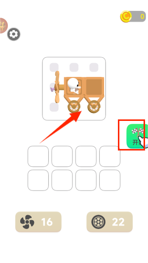 3、待所有部件都正确组装完毕,启动按钮便会发出荧光提示,此时只需点击该按钮,就能驾驶这辆手工打造的木车,在崎岖的赛道上开启闯关之旅。