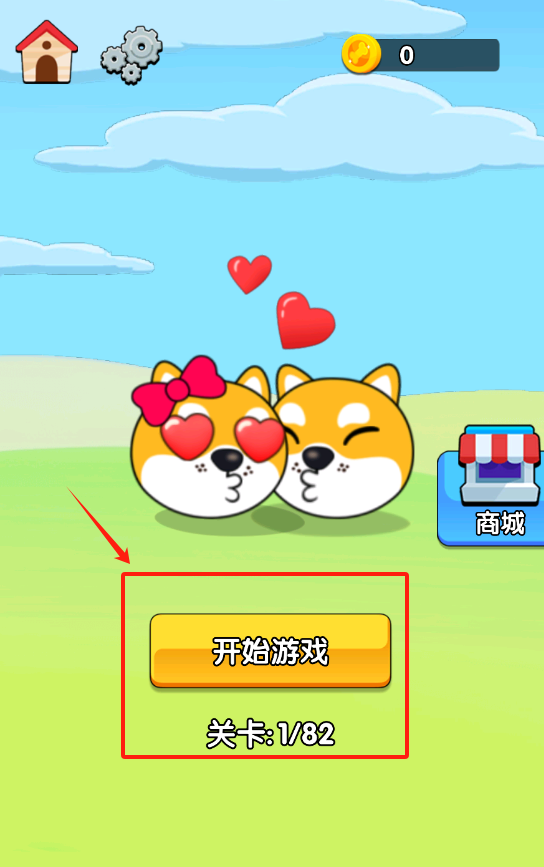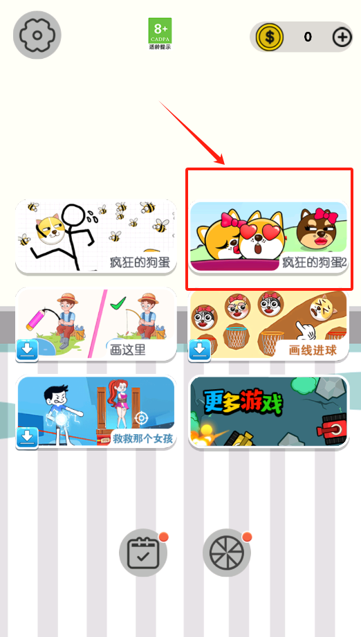 1、看到红色箭头指向疯狂的狗蛋2,点击它就可以进入热门闯关游戏了。