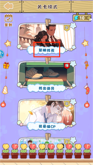 2、在模式选择页面,点击标注有“慧眼找茬”的图标,即可进入特色找物玩法。