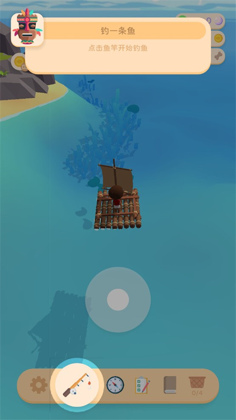 5、点击下方的鱼竿即可开始钓鱼,接着长按瞄准鱼竿完成投掷操作;