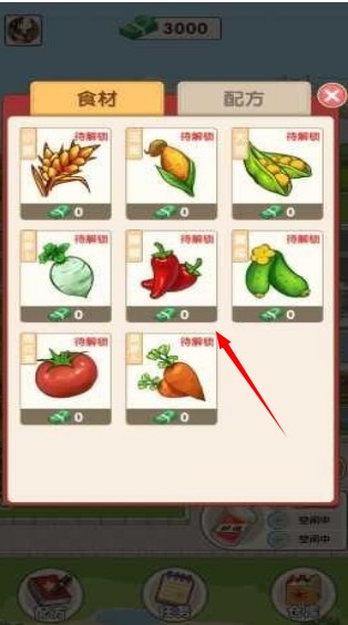 2、新打开的弹窗里包含食材和配方两个窗口,切换至食材窗口即可查看各类可供酿酒使用的食材。