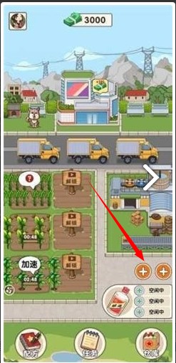 1、我们点击游戏右下角如图所示的“+”按钮,即可打开新界面