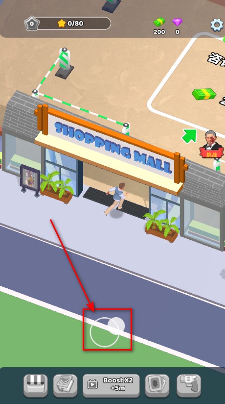 5、借助左侧的虚拟摇杆控制角色移动,开启打造专属商场帝国的经营之旅。