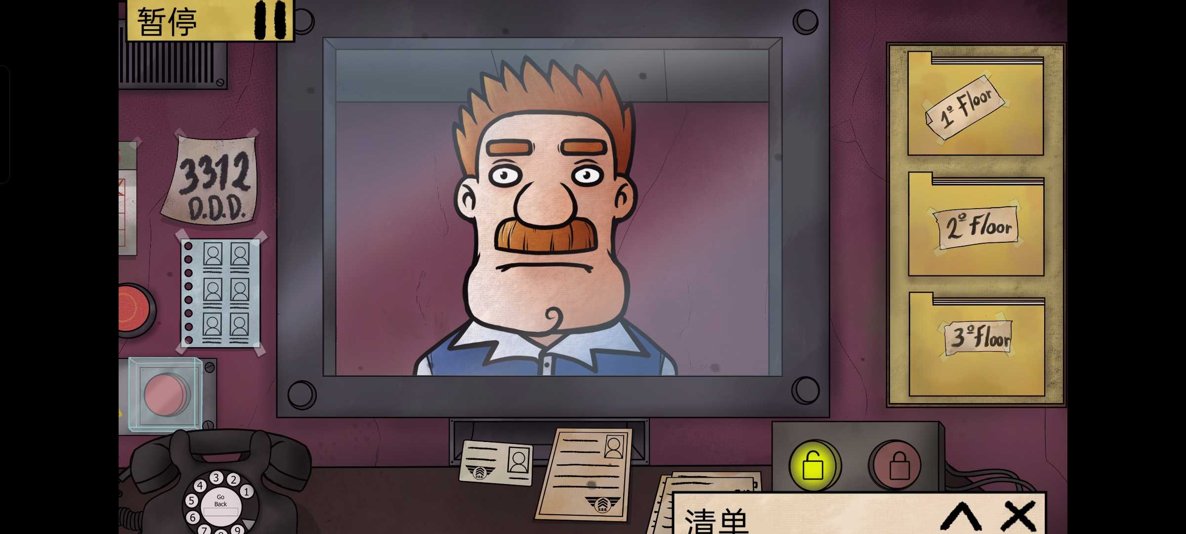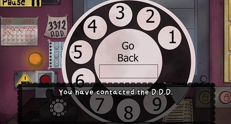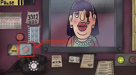 1、遭遇伪人时,请点击左下角的红色按钮触发警报,D.D.D公司的联系电话会显示在左侧的墙面上。