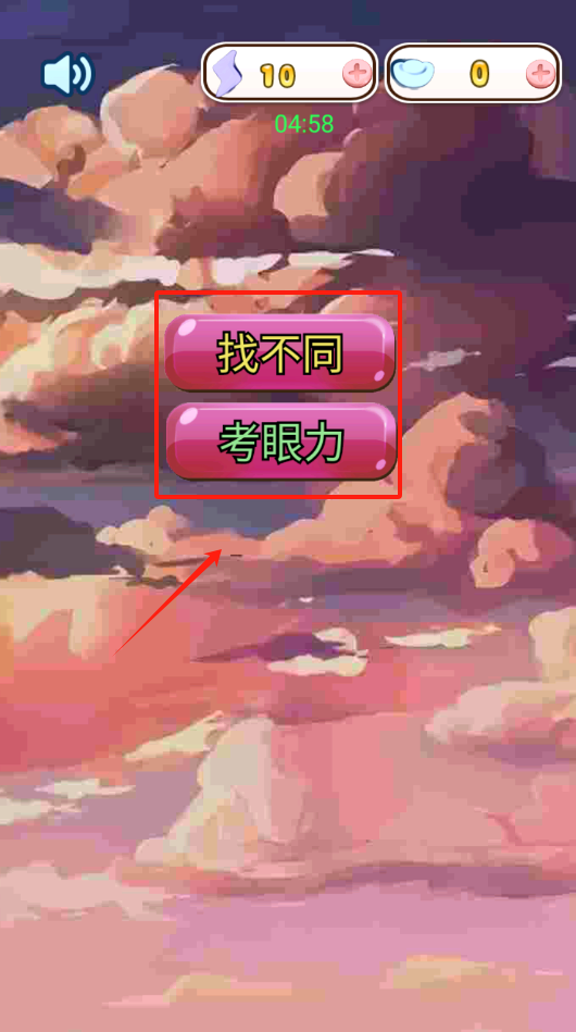 1、找到红框圈出的两个按钮,点击“找不同”或“考眼力”就能开启挑战游戏啦。