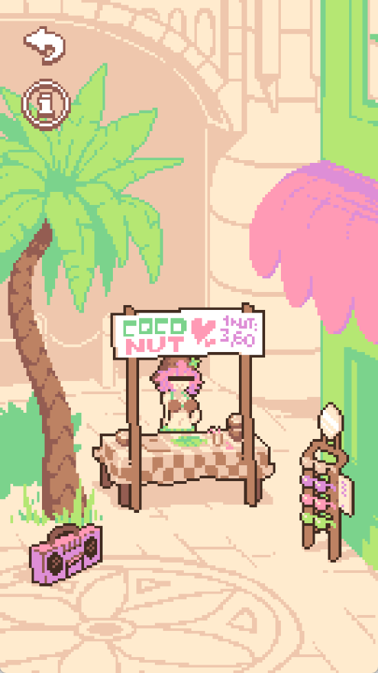 游戏里的女孩正忙着制作椰奶花,玩家能看到她可爱的身影在店铺里来回穿梭。