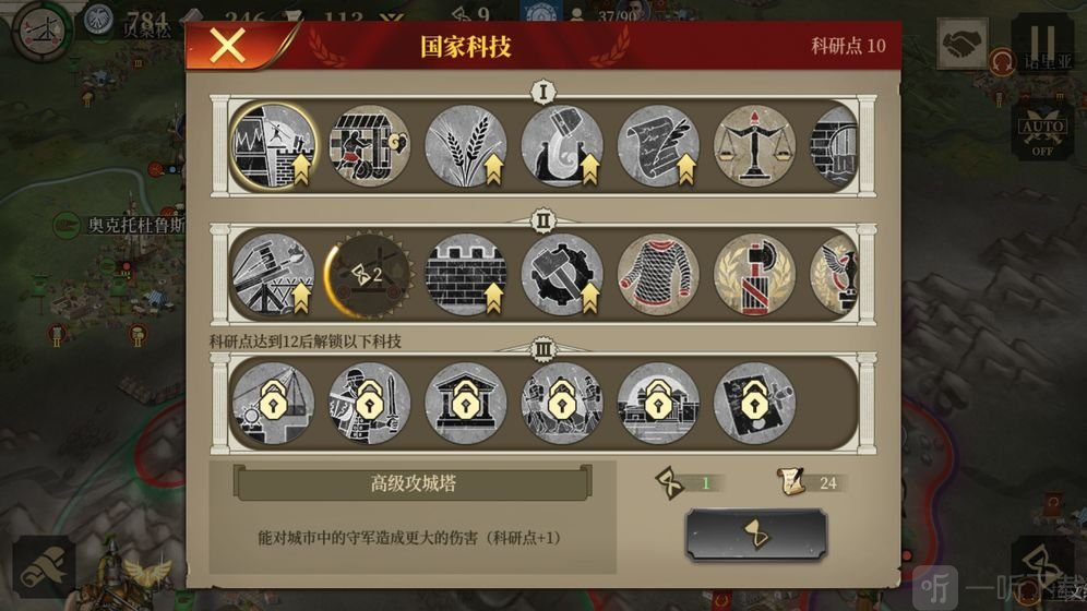 《大征服者:罗马》是一款相当经典的策略类手游,唯有最具勇气的领袖方能笑到最后。游戏充斥着浓郁的罗马风情,是一款更考验玩家策略思维的战争题材游戏,并且融入了丰富的养成玩法,能为玩家带来更精彩的游戏体验,快来畅享各国间的热血对决吧!