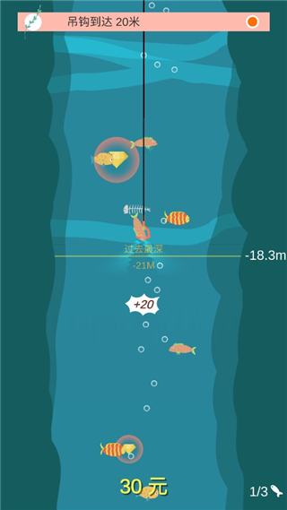 3、当钓饵下潜到特定深度时会自动收杆,一旦有鱼咬钩也会自动提杆。