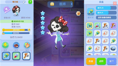 3、穿戴装备后,借助调整与升级装备属性的方式,提升自身医术水平。