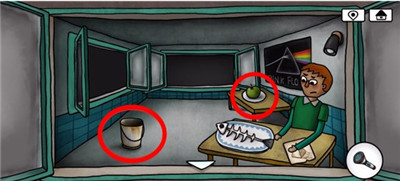 2、在想吃鱼的男人房间里,拾取地上的铁桶。