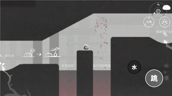 2、解谜通关,探索水滴的奇妙世界,躲避酸雨并运用水滴形态克服障碍。