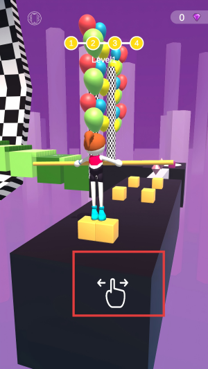 1当进入游戏第一关的初始场景后,跟随带有红框标注的滑动指引,操控角色在方块上维持稳定状态,从而开启这场平衡主题的跑酷竞技。