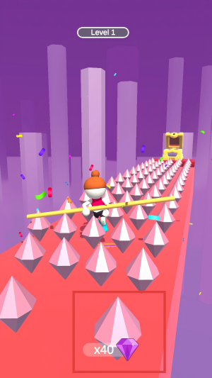 4在布满尖刺的路线中,避开尖刺类的危险装置,拾取带有红色标识的【x40-钻石】道具,朝着关卡的最终目标快速前进。