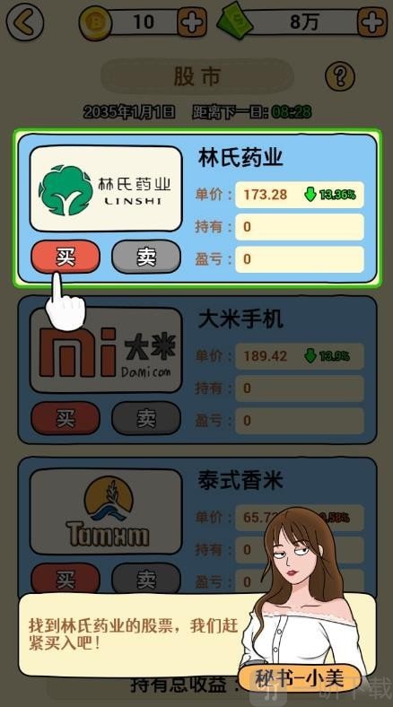 《大锤的逆袭》是一款趣味十足的模拟经营类游戏。在游戏中,玩家将化身为“铁锤”,凭借精湛的操作技巧开启独特的炒股玩法,通过不断积累财富,最终成为新晋富豪。这款游戏能让玩家体验到丰富多样的乐趣。