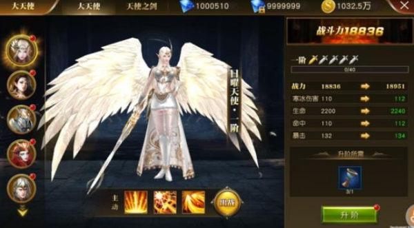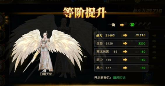大天使激活后能够进行升阶操作,升阶后的天使会得到丰厚的属性加成,并且升阶还能解锁天使之剑。