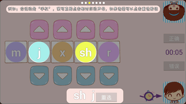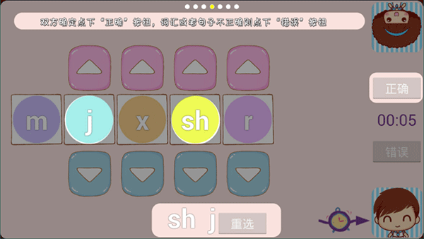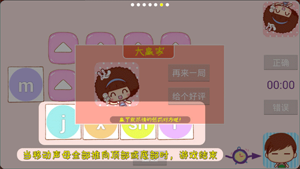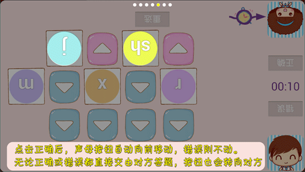 2在声母相关的互动环节中,系统会给出4个随机变化的声母和1个固定不变的声母,参与双方要运用这些声母来完成词语组合与句子构建的任务。