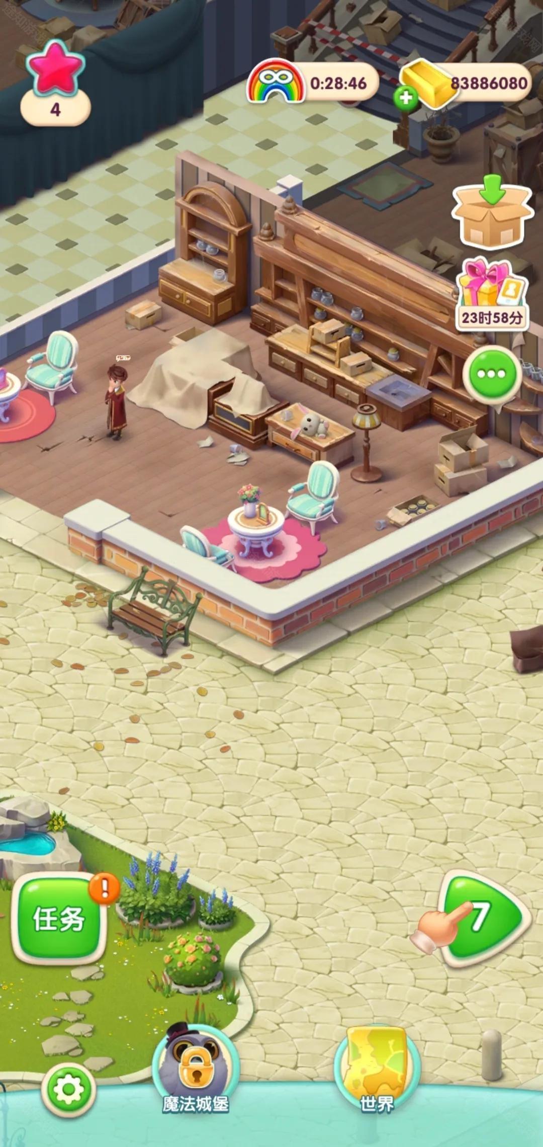 5、之后回到主界面,点击左下角的任务按钮,花费星星对庄园进行翻新。