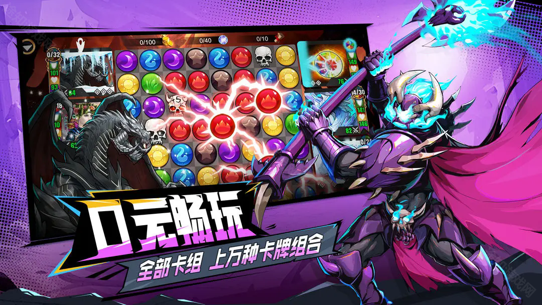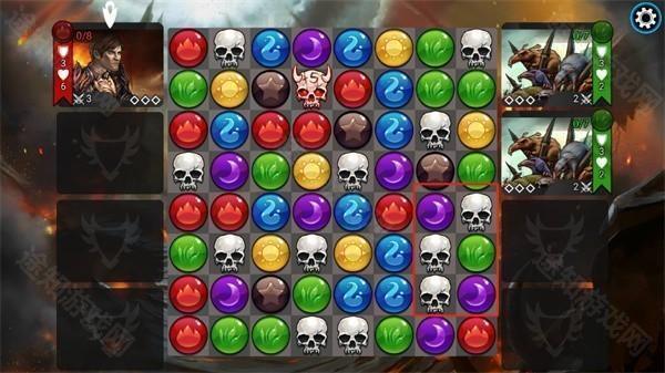 3、通过匹配相同颜色的符石来激活咒法和技能,匹配骷髅头毁灭敌人。