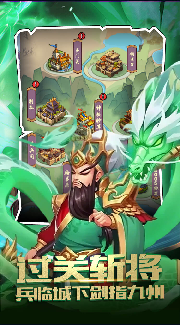 1、收集三国名将,通过挑战经典三国战役和野外流寇来提升部队战力。