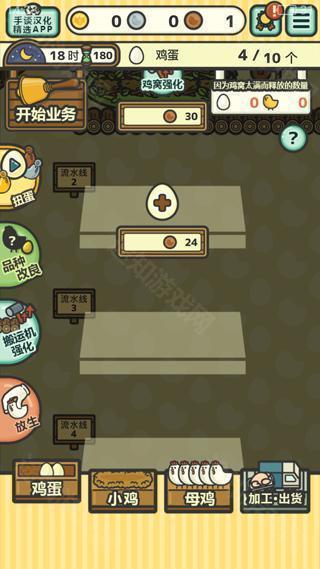 鸡蛋小鸡工厂汉化版游戏进行了汉化处理,玩家可以更轻松的上手,在这里需要对小鸡进行孵化、养成,合理的分配资源让小鸡快速的成长,玩家还可以进行各种各样的品种改良,制作出更优质的小鸡,整个的操作都是直观的,喜欢的话可以试试看。