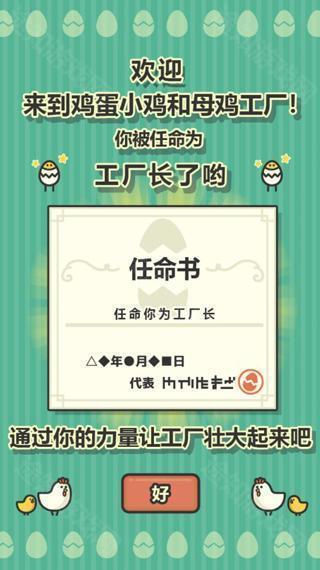 1、在游戏内讲述的是你被任命为小鸡工厂的厂长,需要通过自己的力量让工厂壮大起来!