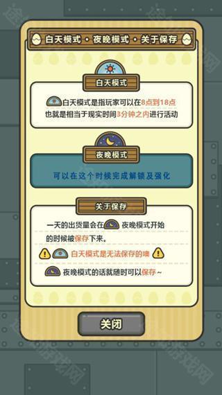 3、游戏本身有着昼夜循环系统,白天为生产时间,持续三分钟,在这短短的三分钟里,你可以点击一下使机器工作时间缩短10秒,使小鸡更快成长更快卖出去赚更多的钱。同时你还可以放生价格低的鸡让昂贵鸡种进到鸡栏里生蛋。三分钟结束后还会跳出营业报告,告诉你总共卖了多少只鸡赚了多少钱,还会和昨天进行对比,可谓是十分励志了。