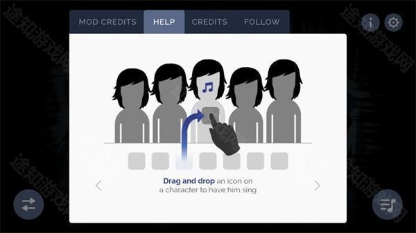 1、把道具拖到角色身上,会触发不一样的音乐效果,从而创作出实时的编曲。