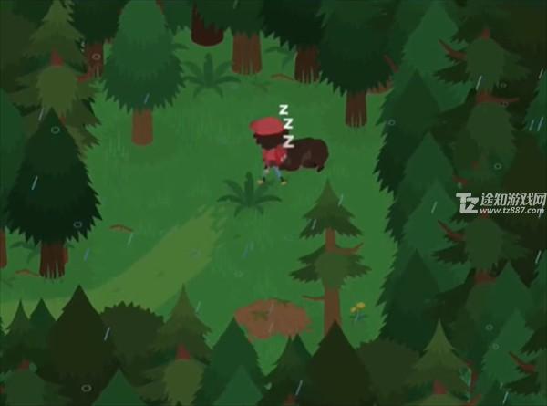 2、获取方式:先钓一条鱼,接着把鱼交给右上角那只贪睡的熊,请它帮忙驱赶蜜蜂,之后就能在树下找到藏宝图了。