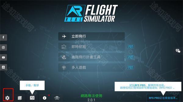 1、首先进入rfs模拟飞行游戏首页,点击左下角的“设置”;