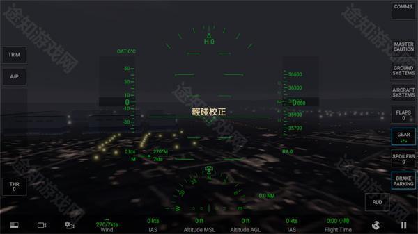 1,进入rfs模拟飞行游戏中,点击“开始起飞”后,进入正式的飞行界面。首先会提示需要轻触校正,校正的目的是为了确认手机在什么角度是飞机平飞的角度状态。