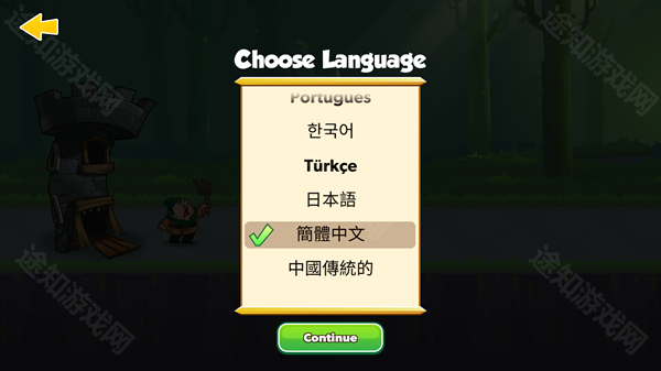 1、在本站完成游戏安装后启动游戏,首次进入时可设置游戏语言,只需下拉语言列表找到简体中文并点击Continue按钮即可。
