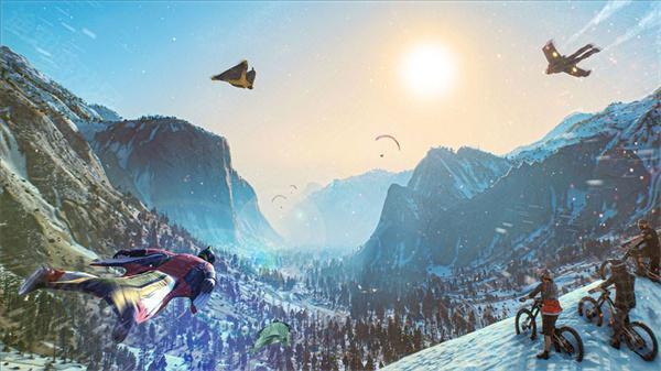在职业模式或多人赛事中,玩家可驾驶摩托、雪橇,使用滑雪板或滑翔衣,穿梭于无缝衔接的开放世界。