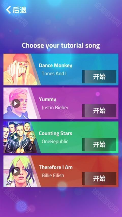 新手玩家进入游戏后会直接进入教程阶段,在这个阶段里只能先选择歌曲类型,接着挑选一首歌曲就能开始游戏了。