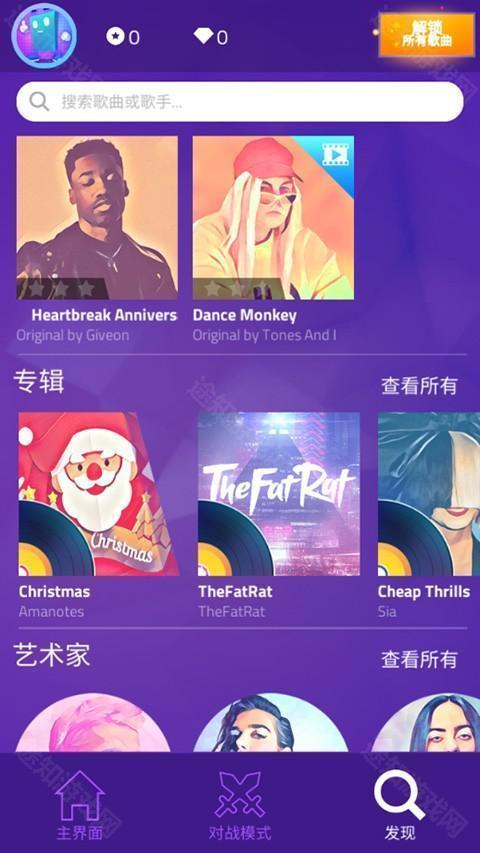 玩家关闭游戏后重新启动,进入【发现】页面,就能通过顶部的搜索框搜索歌曲了。