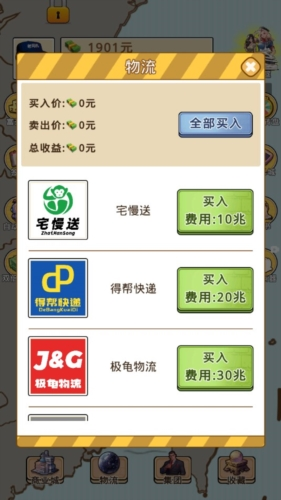 2. 随着游戏进程的推进,玩家能够利用赚取的资金购置更高级的货车、招聘助手,以此拓展业务规模。