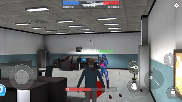 6、游戏开始后,界面顶部显示倒计时,底部显示自身血量,若受到寻找者的攻击则会死亡。