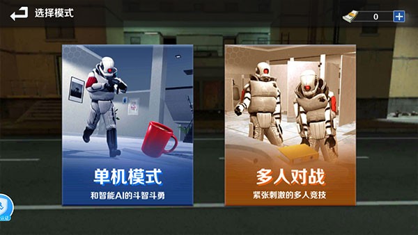 3、进入模式选择界面,单机模式为与智能机器人对战,多人对战则是和其他玩家竞技,点击你想体验的模式即可。