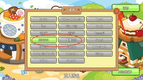 1、进入游戏后,要是发现界面语言不是中文,可点击右上角的“language”按钮进行切换。
