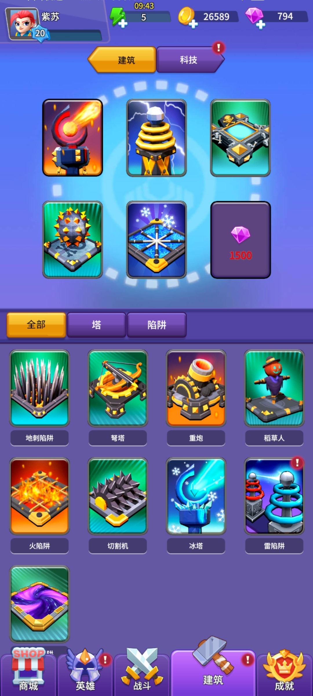 2、每局闯关可随机获得肉鸽词条,影响英雄能力、塔防效果或地形特性。