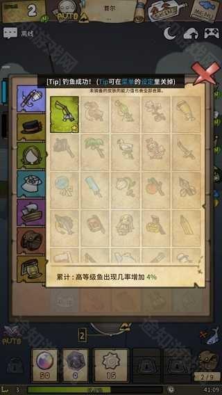 Auto:地图旁的Auto当你在天赋里升级自动导航技能就能解锁,后期放置获得珍珠天赋的必要途径。左下角的Auto是升满自动钓鱼后解锁的按钮