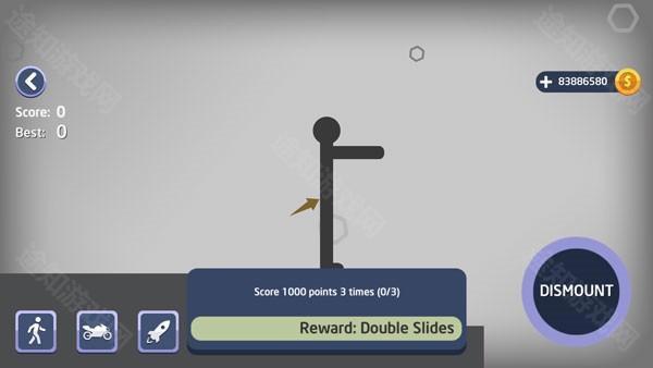 3、通过长按左下角DISMOUNT控制火柴人行动