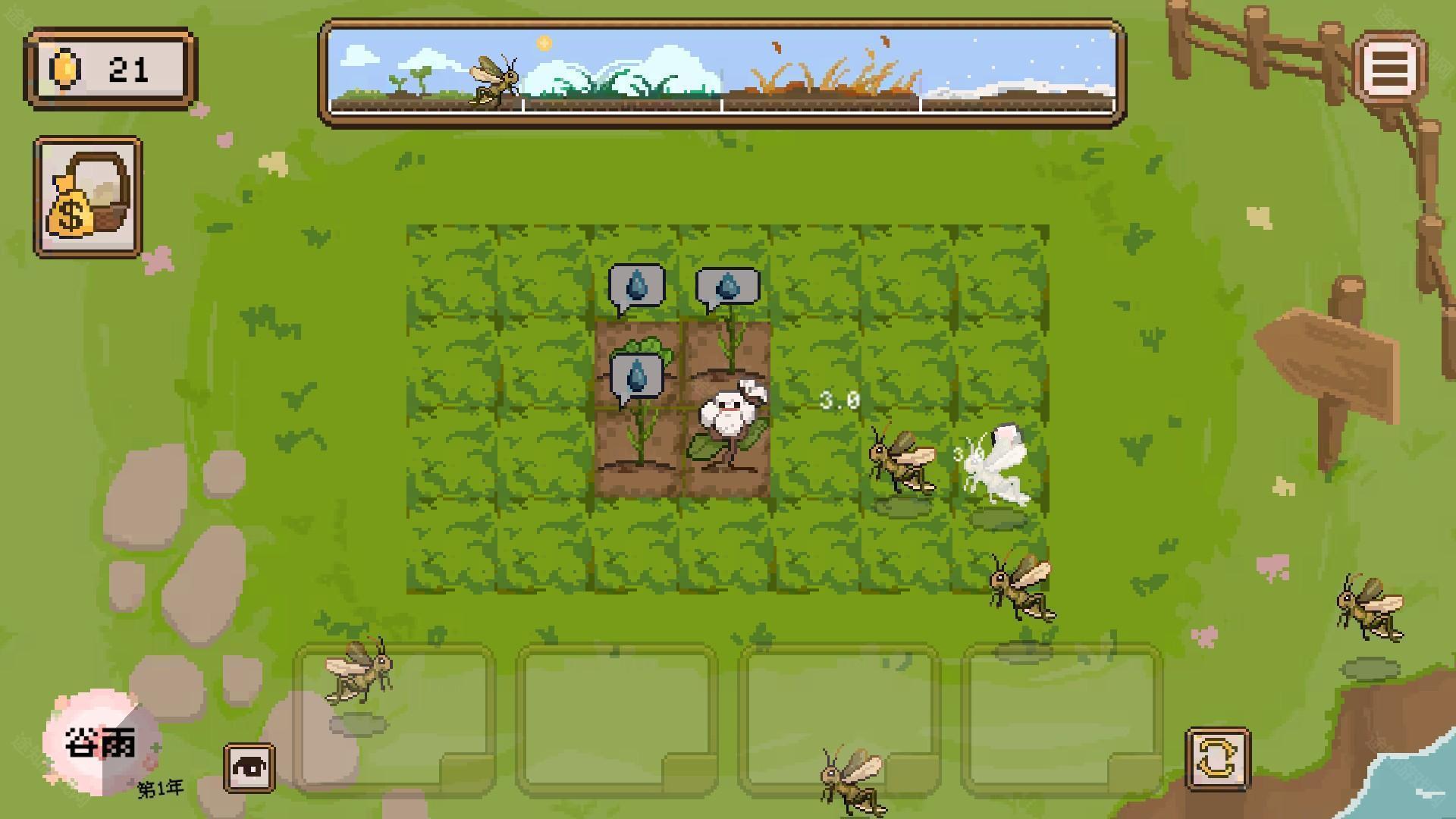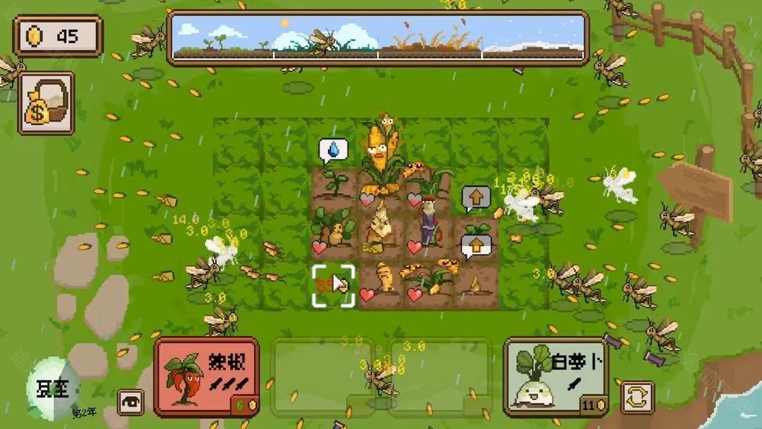 2、游戏开局拥有50初始金币,你需要开坑田地,种植农作物,这些都要金币;