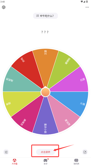 2、转盘生成完成后,轻触底部的旋转按钮,就能启动转盘的随机选择功能。