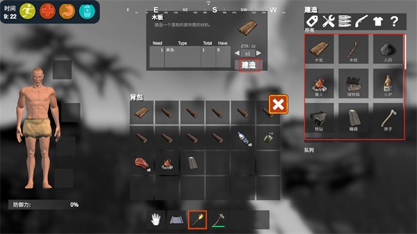 7、还得时刻留意体力、血量、饱食度和水分的状态,一旦饱食度和水分耗尽就会导致血量下降,血量归零的话游戏也就结束了。