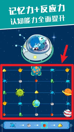 2、控制太空飞船按照正确顺序前进,观察陨石变化并快速记忆颜色与路径顺序。