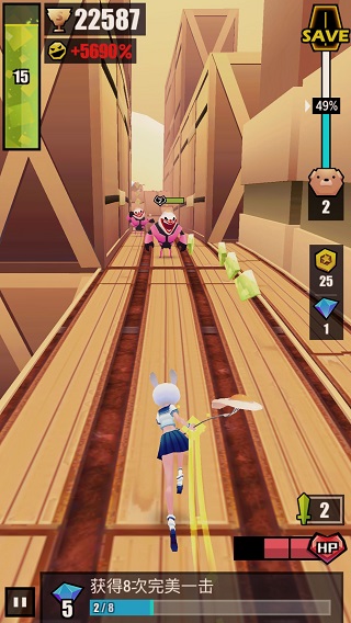 当然啦,无尽旅途可不只是单纯的跑酷爽感体验,这里还能累积玩家的成就进度,达成成就就能解锁对应的套装部件。收集的套装越多,屏幕中央的Doris小姐姐就会变得越靓丽,嘶哈~另外,套装和武器的搜集数量越多,分数加成也会跟着提升,加成越高的话,无尽旅途的最终得分自然也就越高。不过嘛,分数高低其实不重要,重点是为了给小姐姐换上新衣服呀!冲呀!