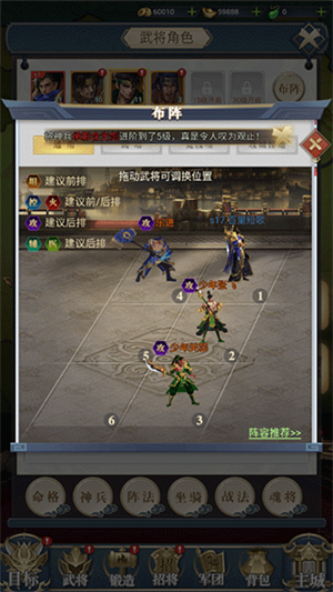 1、前期最好多抽武将先搭配好合适阵容