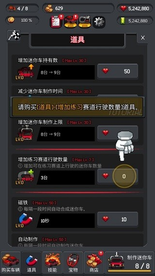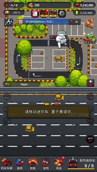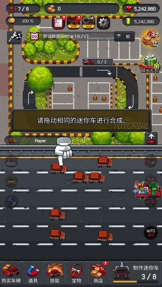 点击“制作迷你车”按钮,召唤更多同款式类型的迷你车驶向赛道,接着在这个基础上,通过将两辆迷你车合并的方式来升级你的迷你赛车。