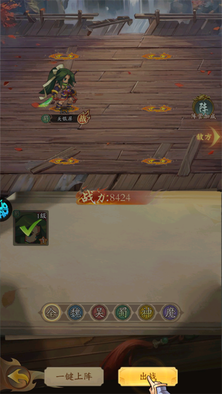 4、将角色进行一键上阵。