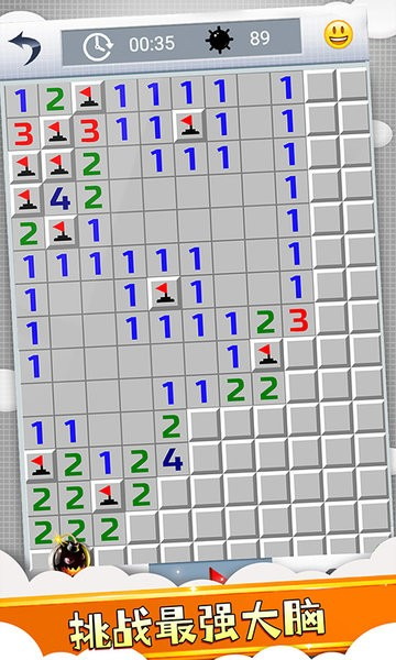 2当你觉得某个网格区域可能存在危险时,可以放置一面小旗子来提示这里可能有地雷。只要把所有隐藏的地雷都标记出来,就能顺利通过这一关。